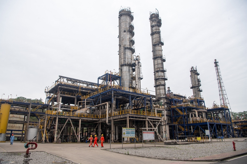 图为4月22日中国石化集团重庆川维化工有限公司工作人员在厂区巡检。
