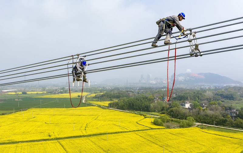 近日,在安徽省芜湖市繁昌区境内,电力工人抢抓春季有利天气,奋战在甘肃—浙江±800千伏特高压直流输电工程施工建设一线,保障能源通道重点工程进度。甘肃—浙江±800千伏特高压直流输电工程是国家“十四五”电力发展规划重点工程,线路全长2370千米,工程贯通后每年可输送电能约360亿千瓦时。