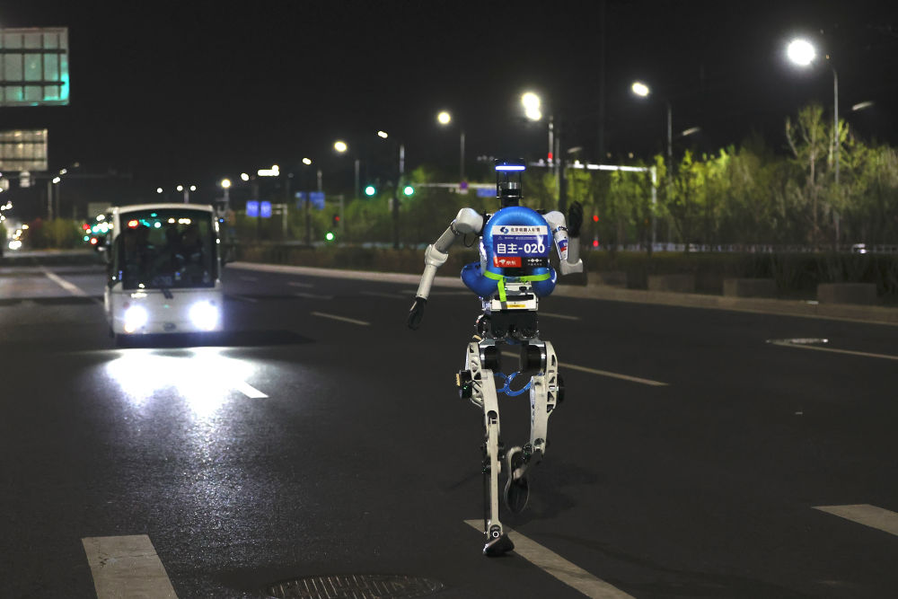 4月11日,一台机器人在测试活动中奔跑。新华社发(翟一凡摄)