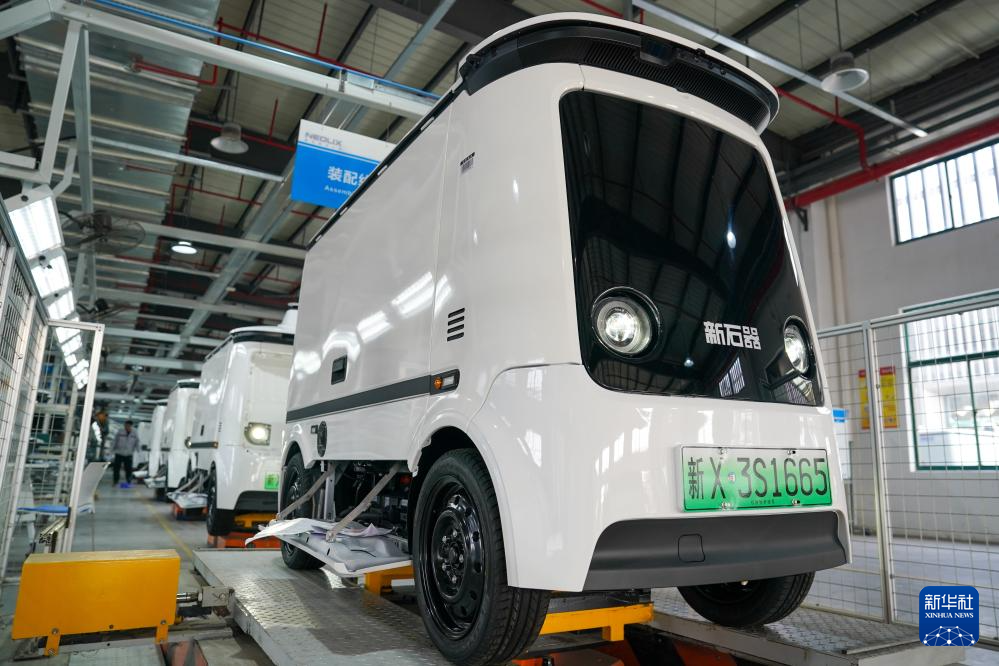 这是3月25日拍摄的新石器(盐城)智能制造有限公司无人车生产线。