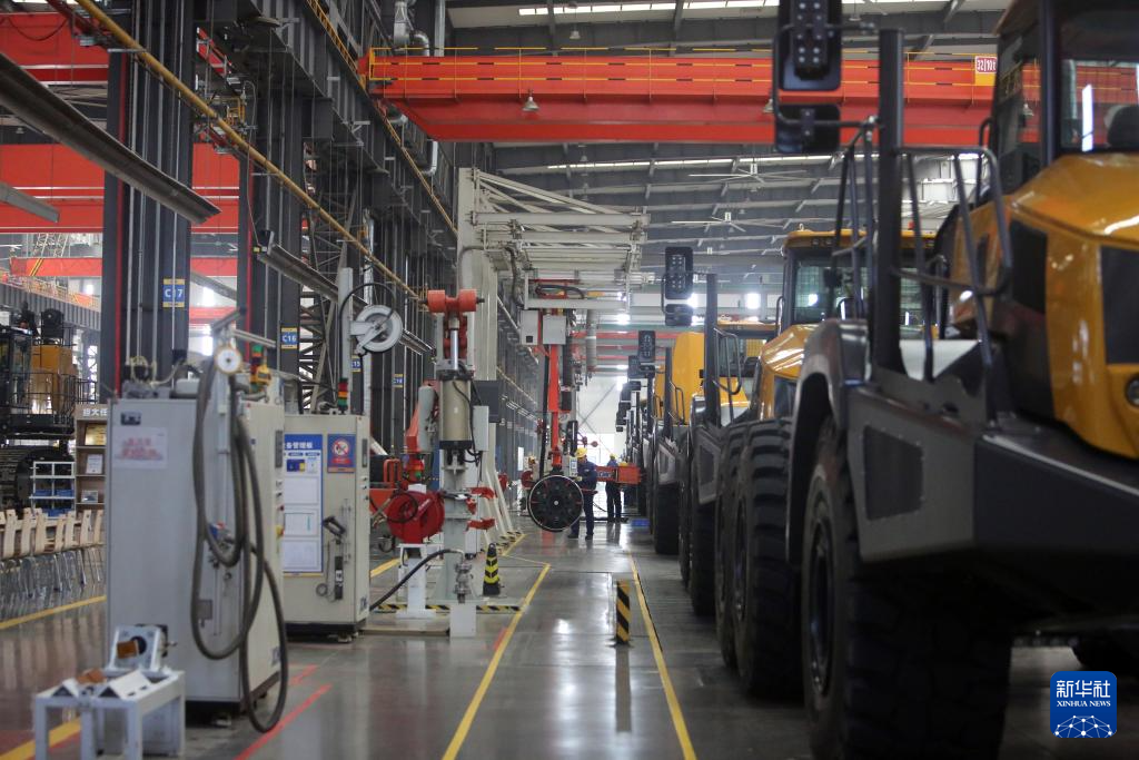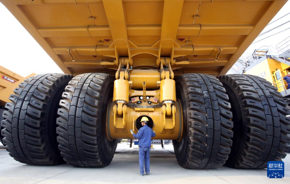 3月25日,工人在徐州徐工矿业机械有限公司检查双桥刚性矿车。