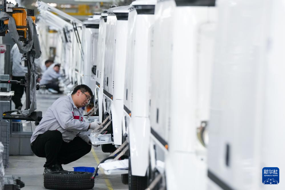 工人在新石器(盐城)智能制造有限公司无人车生产线上进行生产作业(3月25日摄)。