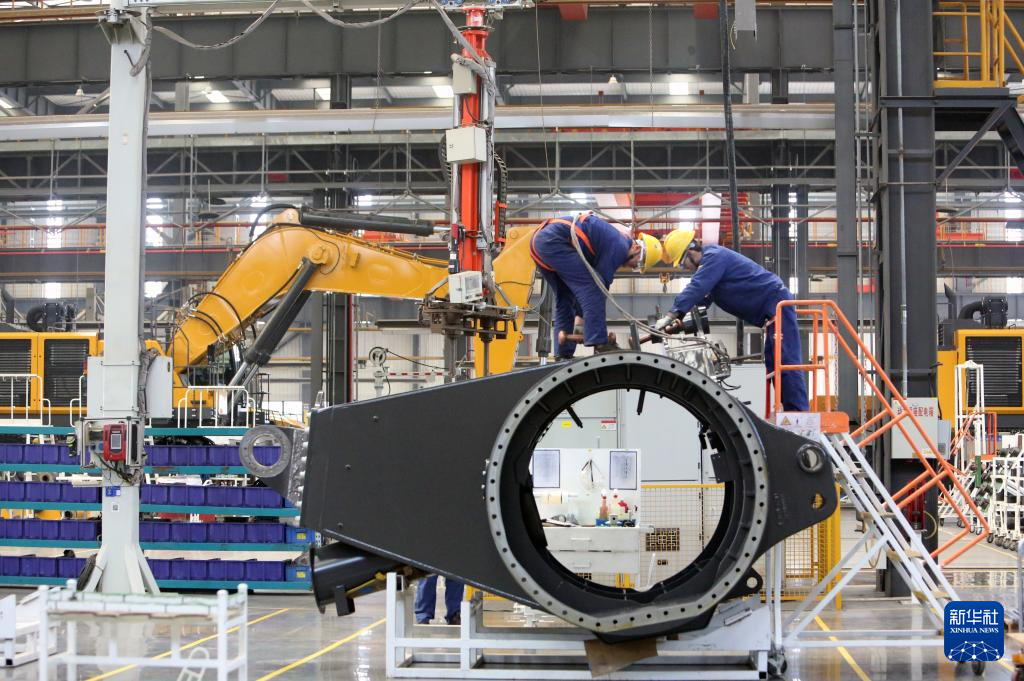 3月25日,工人在徐州徐工矿业机械有限公司的厂房里工作。