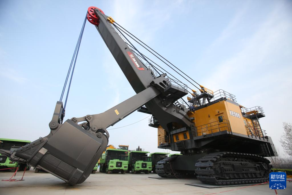 这是在徐州徐工矿业机械有限公司拍摄的XES55电铲(3月25日摄)。作为露天矿山的主要采装设备,XES55电铲可适用于2000万吨级露天煤矿、铁矿及有色金属矿山的剥离和采装作业。