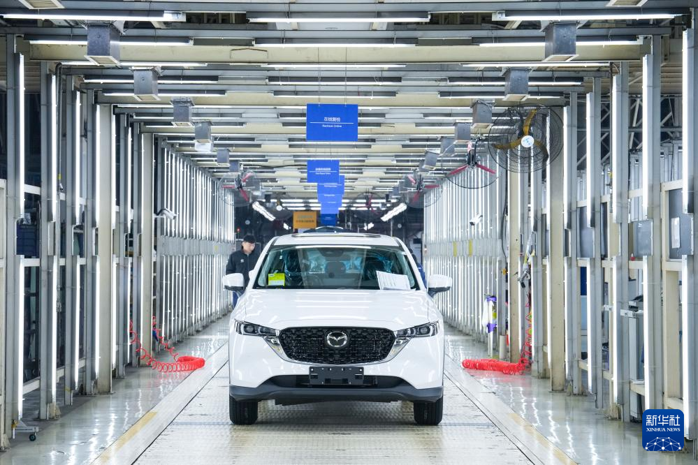 3月17日,在位于南京市江宁开发区的长安马自达汽车有限公司总装车间内,工人在检测线上进行检测。