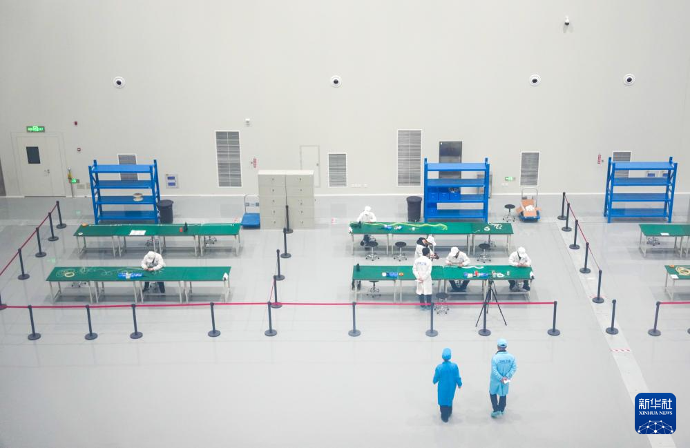 在济南卫星产业发展集团有限公司总装基地,工作人员在卫星生产车间工作(3月29日摄)。新华社记者 徐速绘 摄