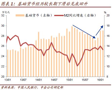 一是基础货币在经历了较长时间的下滑后触底回升。