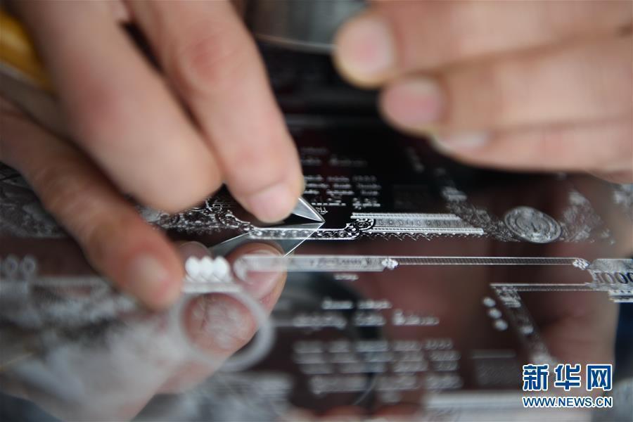 南昌印钞有限公司工作人员在修改用于印刷的金属印版(2月23日摄)。日前,中国印钞造币总公司与尼泊尔央行签订合同,获得其2.6亿张小张5卢比面值钞票订单。这是继2016年尼泊尔100卢比面值和1000卢比面值订单后,中国印钞造币总公司通过国际竞标获得的又一订单,并在南昌印钞有限公司印制。