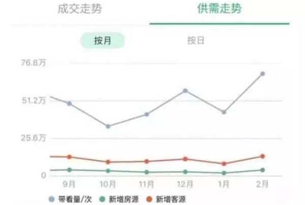链家最新公布的数据显示,2月份,北京城的带看次数接近70万次,创下去年3月以来的最高点。啥叫带看次数,就是跟着中介的小电瓶车去看房的次数。70万次是什么概念?北京三环总长是48公里,70万人手拉手的话,能绕北京三环近25圈!