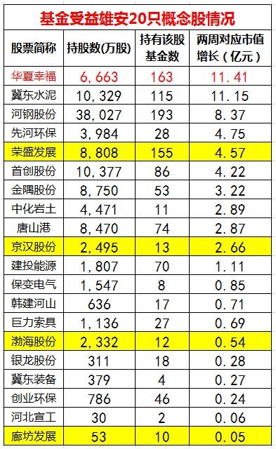 总体而言,雄安概念股的暴涨带动了一大批基金的业绩,也将大幅提升一些重仓基金的业绩排名。