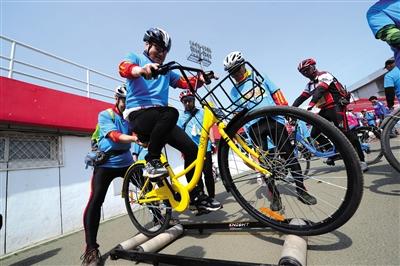 骑车过“独木桥”、绕标、看谁骑得慢……昨天是2017年北京自行车日,活动在石景山体育场举行,现场安排了丰富的自行车趣味游戏,近1000名骑行爱好者参加了活动。与往年北京自行车日活动不同,今年活动现场的车辆全部来自摩拜、ofo、小蓝等共享单车企业。