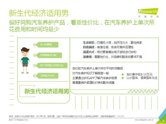 4S店主营价格并不敏感、并不远在汽车养护上花费太多精力的中年保守客户;养护电商针对懂车并接受新事物的年轻客户;普通修理厂的客户,则更多是预算有限的中年客户。