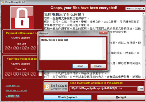 Contact Us点击后会弹出一个文本框,用于联系病毒作者