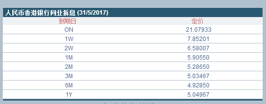 香港离岸人民币隔夜HIBOR暴涨至21.07933%,为1月6日来新高。