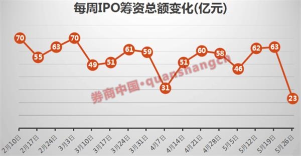 券商中国在5月26日的《都说证监会今天发了三大“红包”:减持规定将做重要修改,明确要借鉴“国际通行做法”,还有两个是…》报道中,就曾提到了当周核发IPO批文情况,核发7家,筹资总金额不超过23亿元, 市场对此给了红包的充分“遐想”。