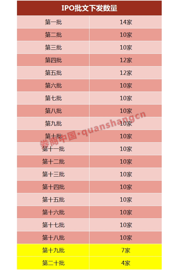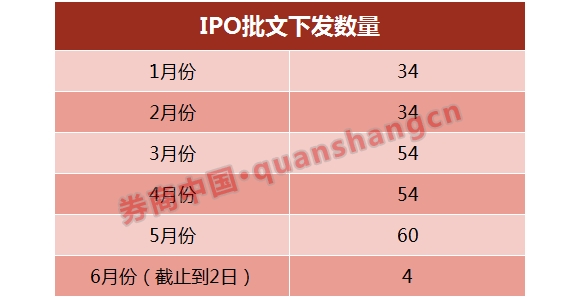 4家,新一批的IPO批文6月2日下发。与此前每批10家公司相比,这一数量明显减少,且筹资总额大幅下降——不超过15亿元。