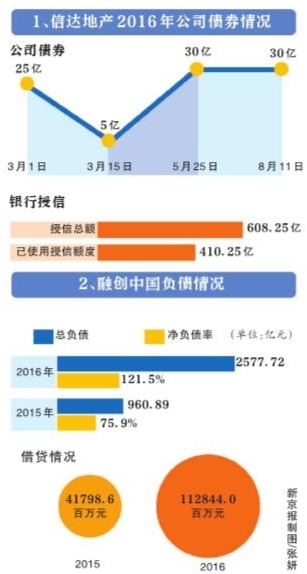 Wind资讯数据显示,2015年信达地产开始大举发债,当年8月至次年5月,信达地产总计发行债券7次,融资120亿元。