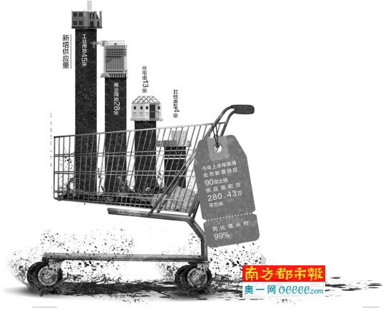 南都记者获悉,珠海房天下数据监控中心统计珠海市国土局数据显示,2017年上半年,珠海全市新增供应90宗土地,供应面积为280.43万平方米,同比增长约99%.与2016年同期相比,今年上半年增加了近10 0万平方米土地供应。其中,供应出让的住宅地13幅,已经与2016年全年的宅地供应量持平。2 8幅商业用地,工业用地45宗,其他类型4宗。