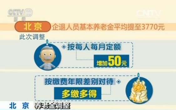 此次调整除了按每人每月定额增加50元外,还按缴费年限差别对待,多缴多得。此外,高龄退休人员还能享受到35元至65元不等的高龄照顾。此次调整从2017年1月起补发,7月15日已发放到企业退休人员手中。