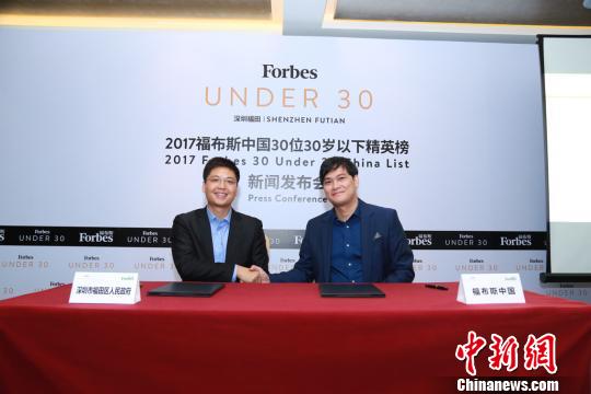 现场,深圳市福田区人民政府与福布斯中国共同签订合作协议,宣布深圳市福田区人民政府将与福布斯中国共同举办于2017年10月25日举行的“第一届福布斯中国30岁以下精英峰会”,届时,福布斯30U30的上榜者将出席。(完)
