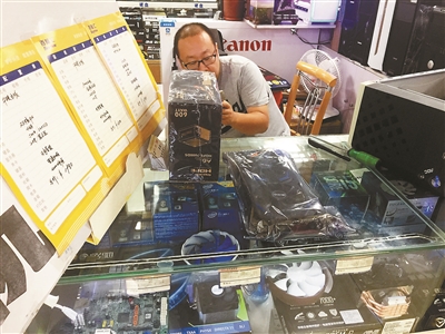 昨天上午,北青报记者来到位于立水桥北路北方明珠大厦四楼的一家电脑配件店,店主坦言,目前中高端显卡大幅度涨价,部分型号的显卡已经断货。他说,两个月前显卡就开始猛涨,“有人直接在经销商那交十几万订金,显卡有货就全拿走”。