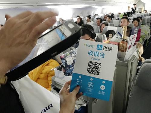 资料图片:空乘人员通过“支付宝”收取货款 新华社记者 张璇 摄
