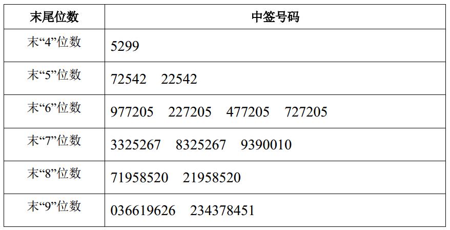 凡参与本次网上定价发行的网上投资者持有的申购配号尾数与上述号码相同的,则为中签号码。中签号码共有 40,000 个,每个中签号码只能认购 500 股厦门艾德生物医药科技股份有限公司 A 股股票。