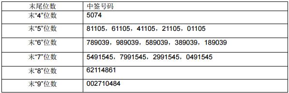 凡参与本次网上定价发行的投资者持有的申购配号尾数与上述号码相同的,则为中签号码。中签号码共有 33,840 个,每个中签号码只能认购 1,000 股广州市嘉诚国际物流股份有限公司 A 股股票。