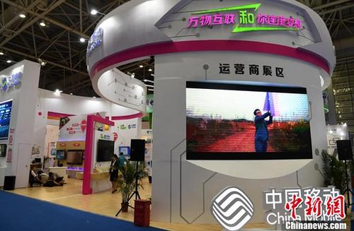 资料图:福州一展会上中国移动通信集团公司展馆。中新社记者 张斌 摄