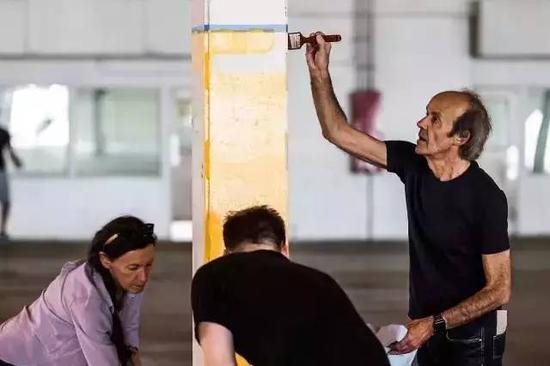 FF CTO Ulrich Kranz正在为工厂内的柱子刷漆