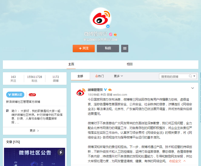 微博对于不良信息给广大网友带来的负面体验深表歉意,将正视问题,全力配合北京市网信办的调查工作,对自身存在的问题积极整改,将企业主体责任严格落实在实际工作当中。认真学习领会贯彻《网络安全法》的相关要求,将《网络安全法》各项规定作为指导微博平台运行的基本准则。