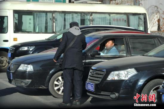 资料图:北京一停车场管理员为车主指挥倒车。中新网记者 金硕 摄