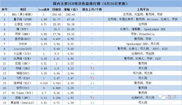 ICO(虚拟货币融资)到底有多火?根据最新的项目收益表来看,截至8月25日,NEO(原小蚁股)自去年9月完成ICO并上线交易以来,涨幅已经高达282倍,排名第二的量子链(QTUM)的涨幅也已将近100%。这样的涨幅让与资本市场IPO非常相似的ICO如火如荼,从原本属于极小众的投资圈开始向大众投资者群体蔓延。