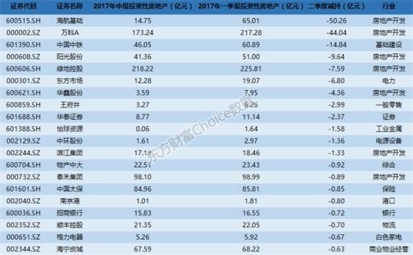 部分二季度抛售房产上市公司: