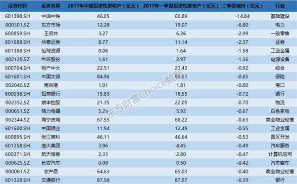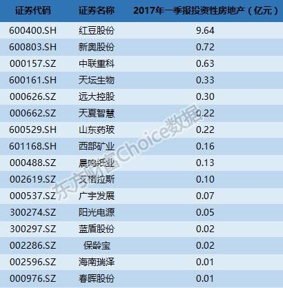 东方财富Choice数据显示,红豆股份等17家上市公司中报显示,其一季报中各自持有的房产在二季度中以及被清零。