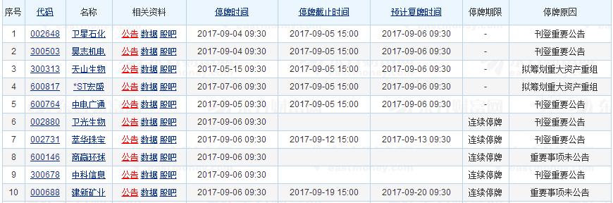 点击查看更多停复牌公司信息(数据来源:东方财富网)