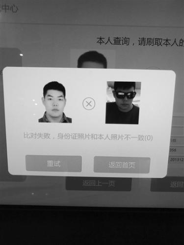 记者戴墨镜查询不动产信息,自助查询机显示认证失败
