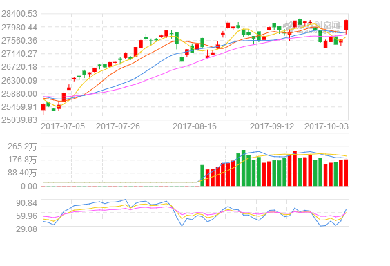 从盘面情况看,在港中资银行板块全天做多情绪均高涨,仅临近收盘时分有少许回落。中资银行股的大幅上涨带动恒指上涨2.25%,报收28173.21点。内地其他金融股和内房股也表现不俗,显示市场对政策刺激的信号消化充分。