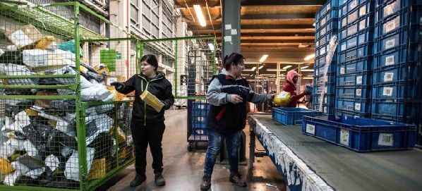 阿里巴巴旗下的跨境电商 平台全球速卖通是智利人的主 要网购网站之一。图为智利邮 政物流中心工作人员分拣来自 中国的包裹