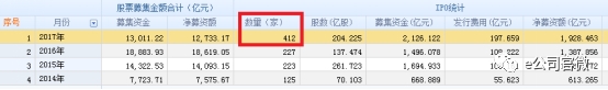 截至目前,2017年A股就有超过400家公司发行上市,较2016年大幅增加,这也使得A股的拟IPO公司存量数据大幅下降,先上个图表!