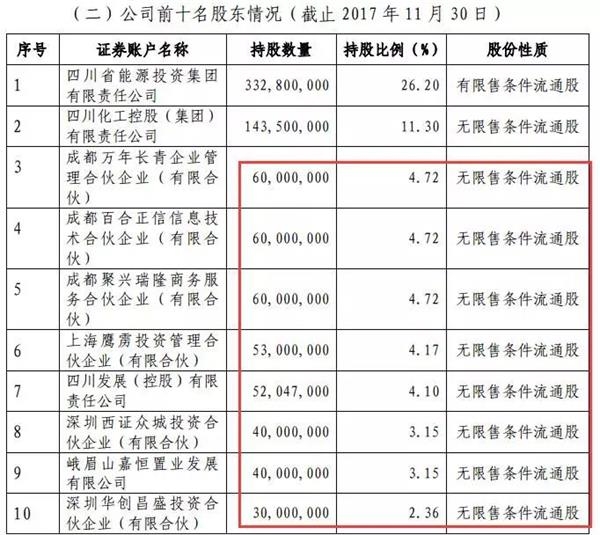 4.3元的转增股价格,远低于暂停上市前10.27元的收盘价,即使18日川化股份大跌28.92%,但这13为股东仍然“浮盈”69.77%。而且除了第一大股外,其余12名重整投资人持股比例均低于5%且无限售条件。
