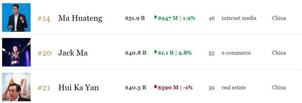 在那之后,马化腾就一直未被反超。截至发稿,马云身家为408亿美元,位于全球富豪榜第20位,许家印则以390亿美元的身家紧随马云之后,位列第21位;116亿身家的刘强东排在第143位。粗略计算,马化腾个人身家仅比马云刘强东加起来少3亿美元。