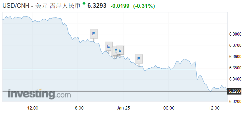 美元指数1月25日跌破89,创下2014年1月以来历史新低,非美货币全线上涨,在、离岸人民币盘中升破6.32,前者当日涨幅超过700基点,并创下“8·11汇改”以来新高。
