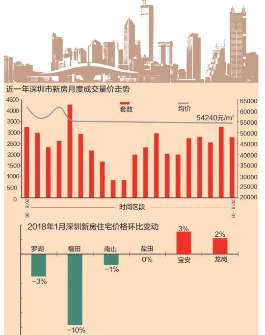 转眼间已走过2018年1月,根据深圳市规土委数据,深圳全市新房成交2778套,成交量小幅回落15%左右;成交均价54240元/平米,较2017年12月下降16元/平米。