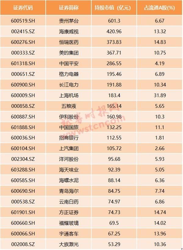 数据显示,截至上周末,北上资金对22只个股的持股市值超过50亿元,其中,对贵州茅台、海康威视、美的集团等13只个股的持股市值超过100亿元。