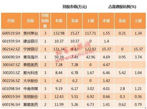 一季报数据显示,QFII持股市值增长最快的是贵州茅台,单季增加15.27亿元(同期茅台下跌近2%);其次是建设银行,单季增加10.37亿元(同期上涨0.91%);宁波银行、青岛海尔、泰格医药等个股紧随其后。