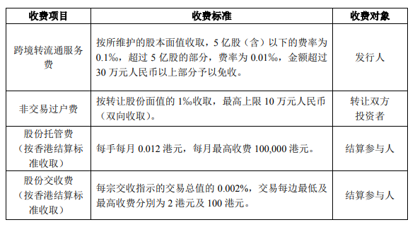 1、香港交易结算机构在香港市场直接扣收的相关费用,按其规定执行。按香港结算标准收取的,香港结算标准如有调整,本公司相应调整。