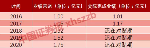 根据当时的协议,冯小刚等业绩承诺期限为5年,自股权转让完成之日起至2020年12 月31日止,其中2016年度是指标的股权转让完成之日起至2016年12月31日止。 2016年度承诺的业绩目标为目标公司当年经审计的税后净利润不低于人民币1亿元,自2017年度起,每个年度的业绩目标为在上一个年度承诺的净利润目标基础上增长15%。