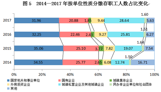 缴存职工中,城镇私营企业及其他城镇企业、外商投资企业、民办非企业单位和其他类型单位占45.31%,比上年增加2.45个百分点。
