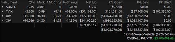 但当股市上周开始严重下挫时,一切都发生了变化。周一,道琼斯工业平均指数道琼斯工业平均指数创下了历史最大跌幅。在抛售之后的几个小时里,XIV下跌了90%,有个人投资者表示自己三年工作的心血400万美元一夜之间付之东流,同时瑞信银行作为VIX的最大投资者,此轮损失超过5亿美元,表示将终止未来的XIV交易。
